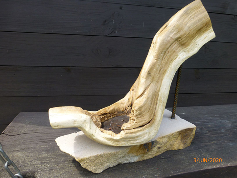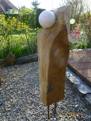 Dekorative Handwerkskunst für Haus, Garten, Balkon und Terrasse. Abgelagerte Hölzer gehen mit verschiedenen Steinsorten eine Symbiose ein. Es können aber auch nur Steinobjekte erworben