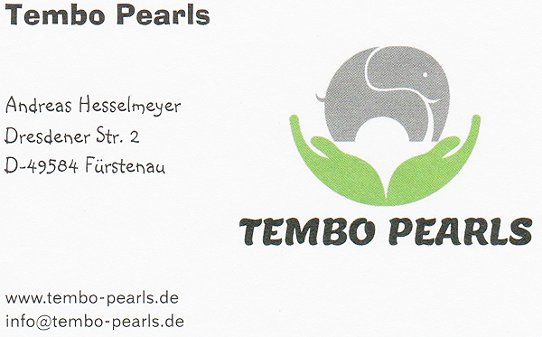 Tembo Pearls stellt hauptsächlich Handarbeiten zum Thema Elefant her. Diese werden auf den Kunsthandwerkermärkten verkauft und auch über die Webseite www.tembo-pearls.de .